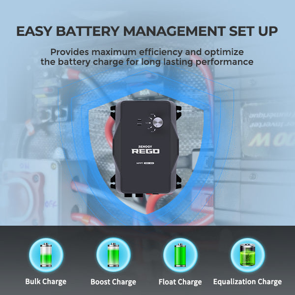 The REGO 12V 60A MPPT Solar Charge Controller is designed to install easily and protect your solar system completely. Its plug-and-play connections can save a lot of installation time compared with traditional controllers. With advanced BPU (Battery Protect Unit) technology, it provides excellent protection for the batteries from cell damage and failure, ensuring the whole system is safe. The MPPT technology here increases tracking efficiency to 99%, which significantly improves solar power output and thus increases more energy to your system. It is compact yet durable, combining high technology with pleasing aesthetics, saving space yet outperforming competitors in its class. The REGO 12V 60A MPPT Solar Charge Controller gives you unequal efficiency and reliability.