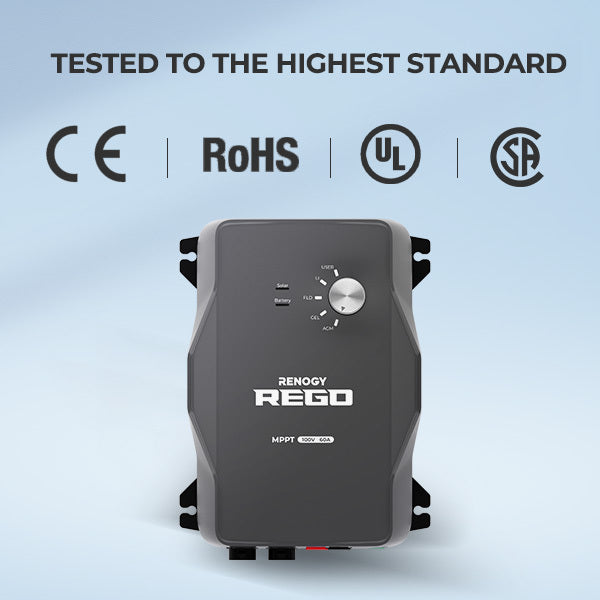 The REGO charge controller is multi-icertified to UL1741, CAN/CSA-C22.2 No. 107.1/CB+IEC 62109/EMC,EN61000-3-1/-3; EN301489-1/17; RF,EN300328; and FCC, 47 CFR 15B. Built to meet and exceed the most rigorous quality and performance standards, maximize your system energy and provide comprehensive protections.