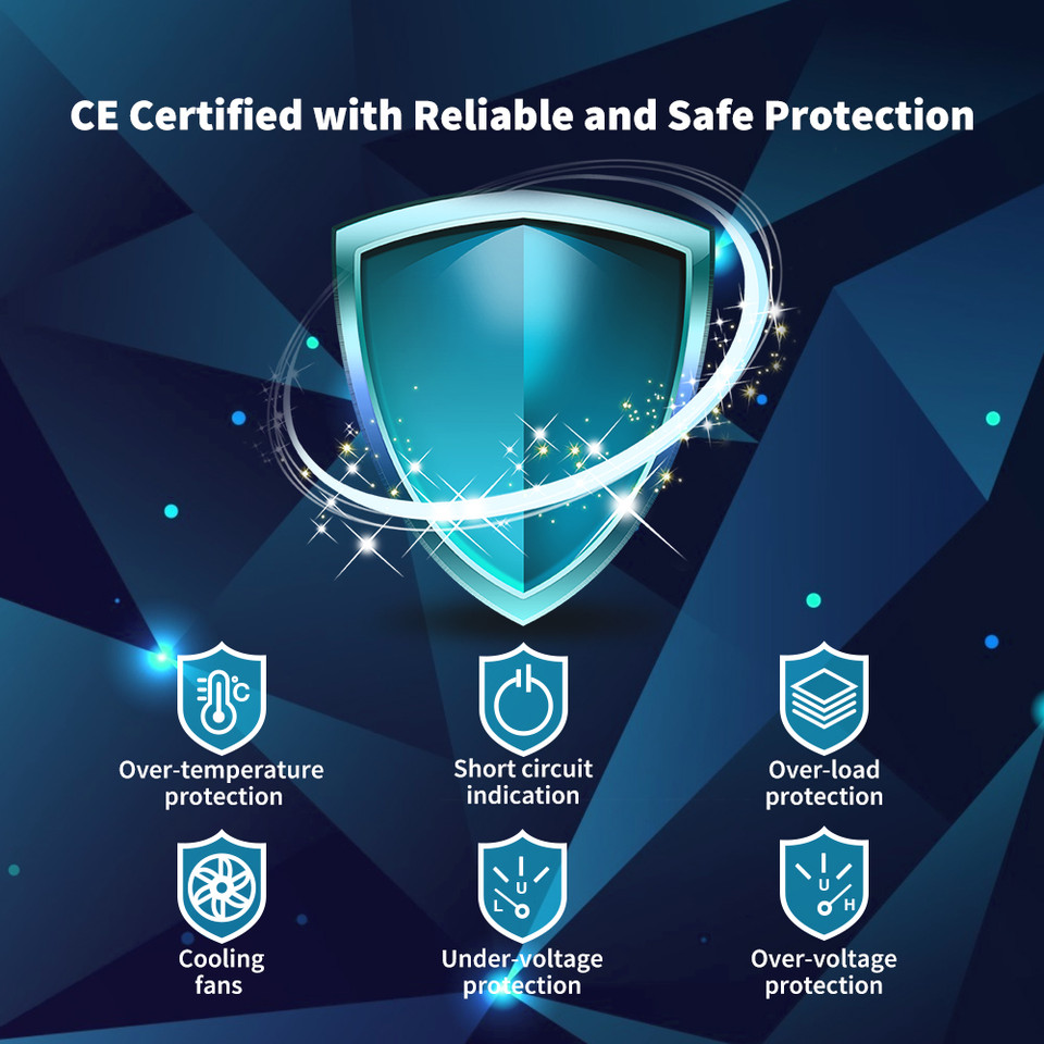High Voltage Shutdown: 16.3Vdc | Battery supply & AC main transfer time within 50mS |