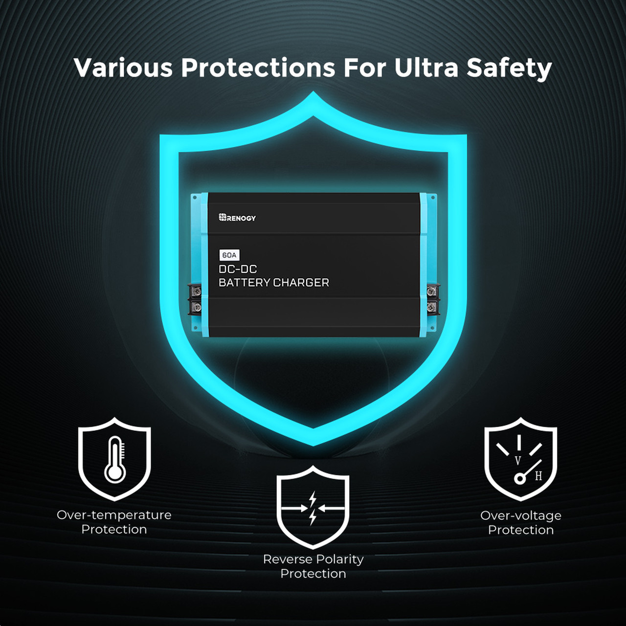 The DC-DC battery charger uses a 3-stage charging process (Bulk, Boost, and Float) to efficiently and automatically charge your house batteries from the starter battery, ensuring they reach 100% capacity.
