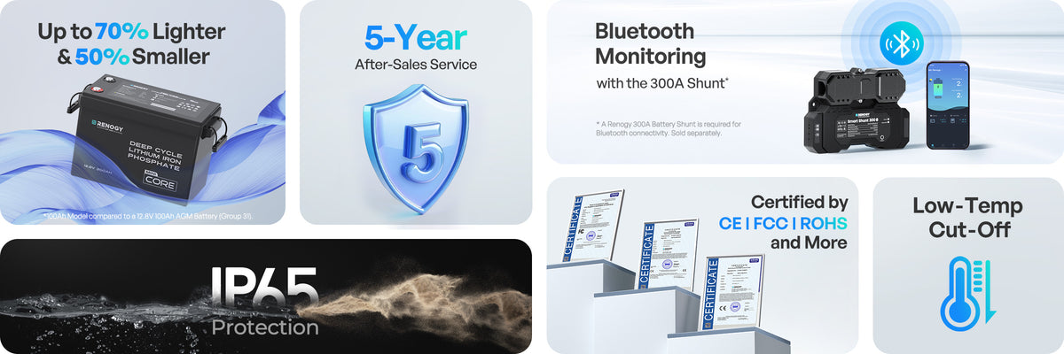 Power up with compact confidence! The Renogy Core Mini Series LiFePO₄ Battery is up to 50% smaller than its counterparts while maintaining a robust BMS plus a low-temperature cut-off for enhanced protection. Perfect for both travel and home use, it’s the ideal solution for versatile power demands.