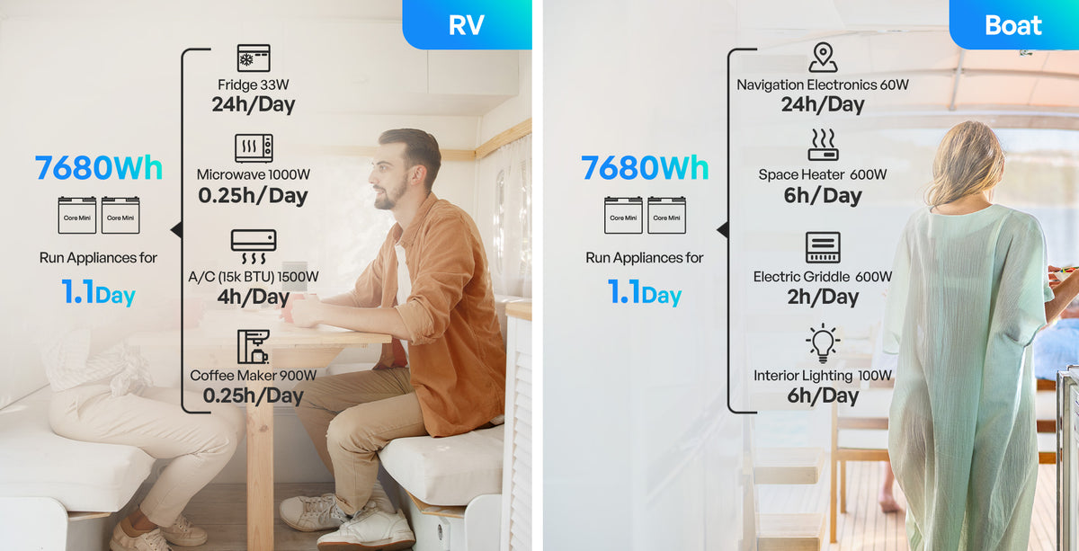 Optimized for RV and Marine Applications — Compact in size, yet engineered to reliably power a wide spectrum of onboard appliances across both environments.