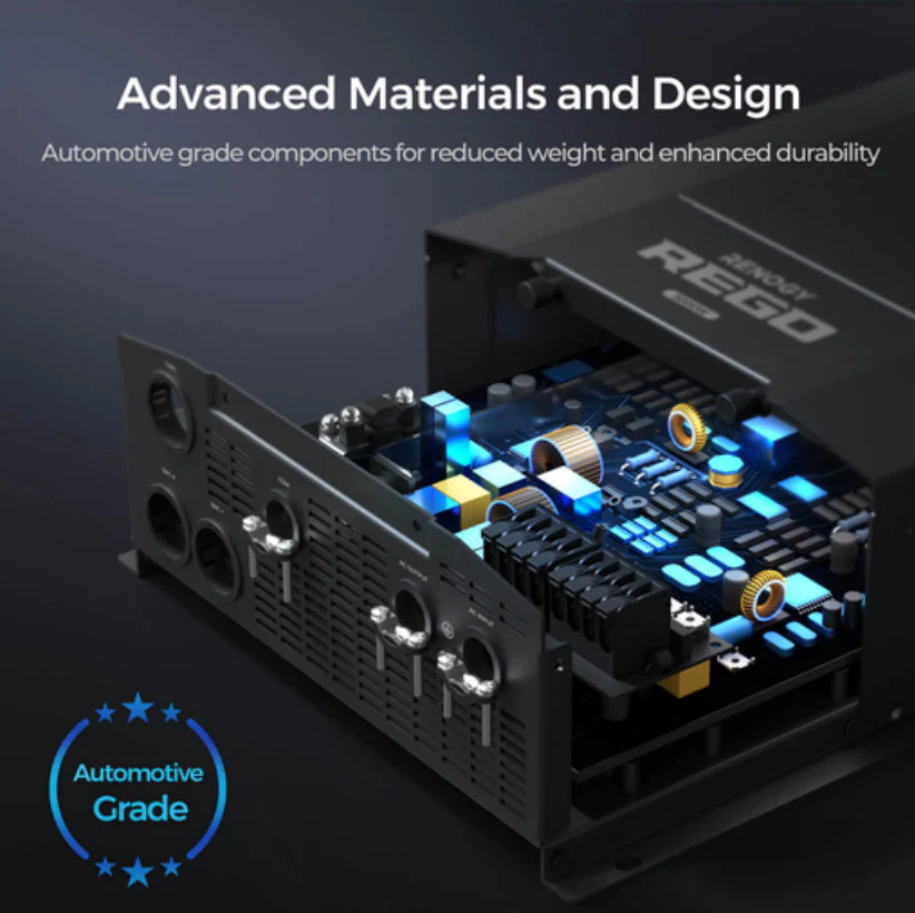 The Rego 12V 3000W HF Inverter Charger is engineered to deliver seamless power management for Off-grid homes and RVs. This inverter charger excels in converting DC to AC power and charging batteries when connected to mains power, ensuring continuous power supply with out interruptions.