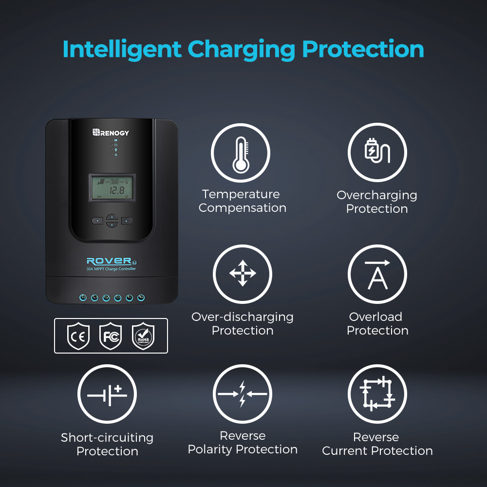 Rover 30A Charge Controller features Auto-On/Off Mode, Timer Mode, Manual Mode, Test Mode, and Always-On Mode, further maximizing your system flexibility.
